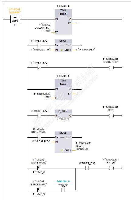 最近在做PLC与第三方设备通过Modbus TCP通讯的一个项目,由于第三方设备过多,只能通过每个MB_CLIENT下进行多站轮询(三个从站),但是在使用过程中发现,自己写的轮询方式能够读取到数据,但是读取到的数据与指令存储寄存器会错位,即读取到的第一个数据存储到第二个寄存器,后面的依次类推,希望有做过这方面的大神帮忙指导下,谢谢!