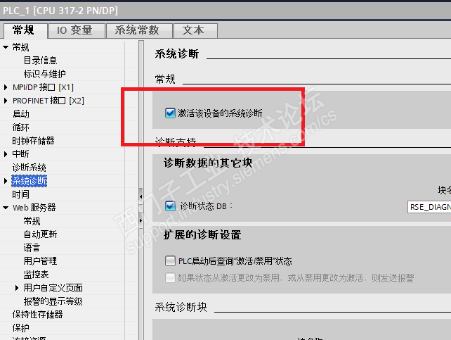 如果是S7-300的PLC,需要勾选系统诊断对话框,请参考图片