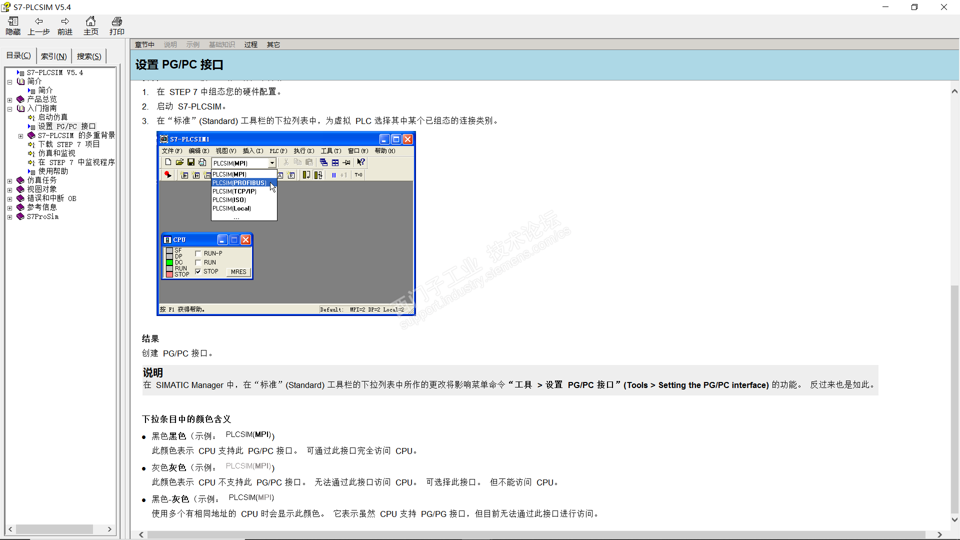 今天想用PLCSIM进行仿真,结果发现PLCSIM根本控制不了step7,将PLCSIM中run档打开在step7中任然显示离线,以前还可以正常使用,查阅帮助文档说PLCSIM中的PG/PC 接口括号里和括号外两个灰色的不能建立连接,但是我的所有选项都是灰色的该怎么解决丫,希望大神能帮帮我,谢谢!