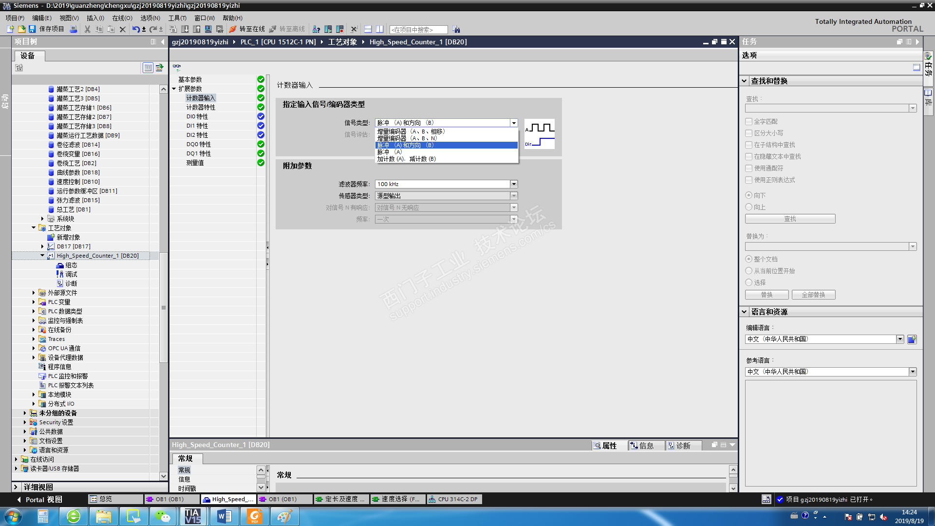 之前有个项目采用的是314C的PLC,其中用到了一个频率测量功能,频率测量功能输出的频率,通过计算显示车速,输出的计数值,通过计算显示计长。在组态中,输入采用的形式是单倍频旋转编码器,但是该功能可以实现计长的加减。