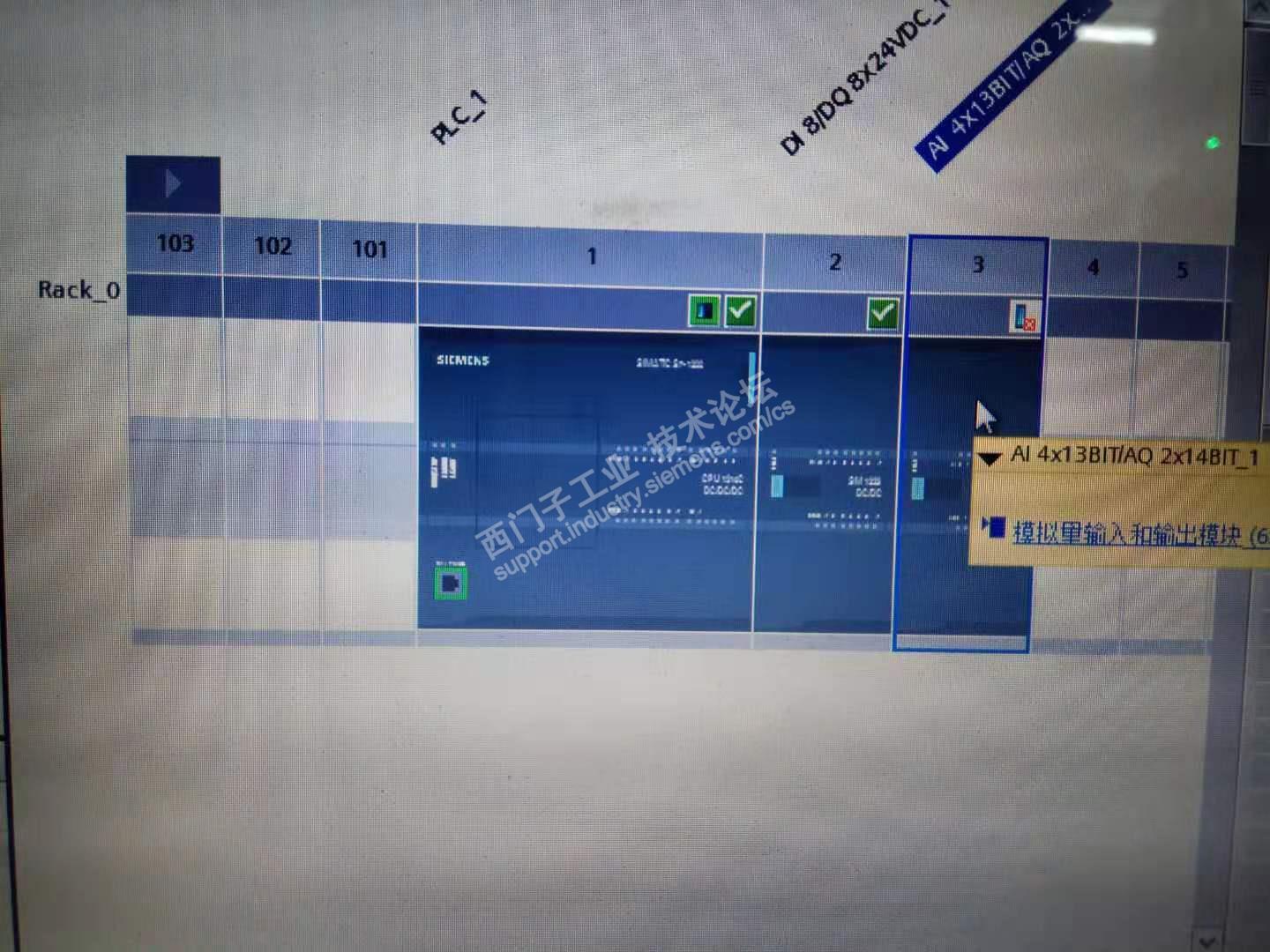 SM1234模拟量模块为新增的,放在数字量模块后面,程序上也组态了,但是下载程序之后在线监控有错误。