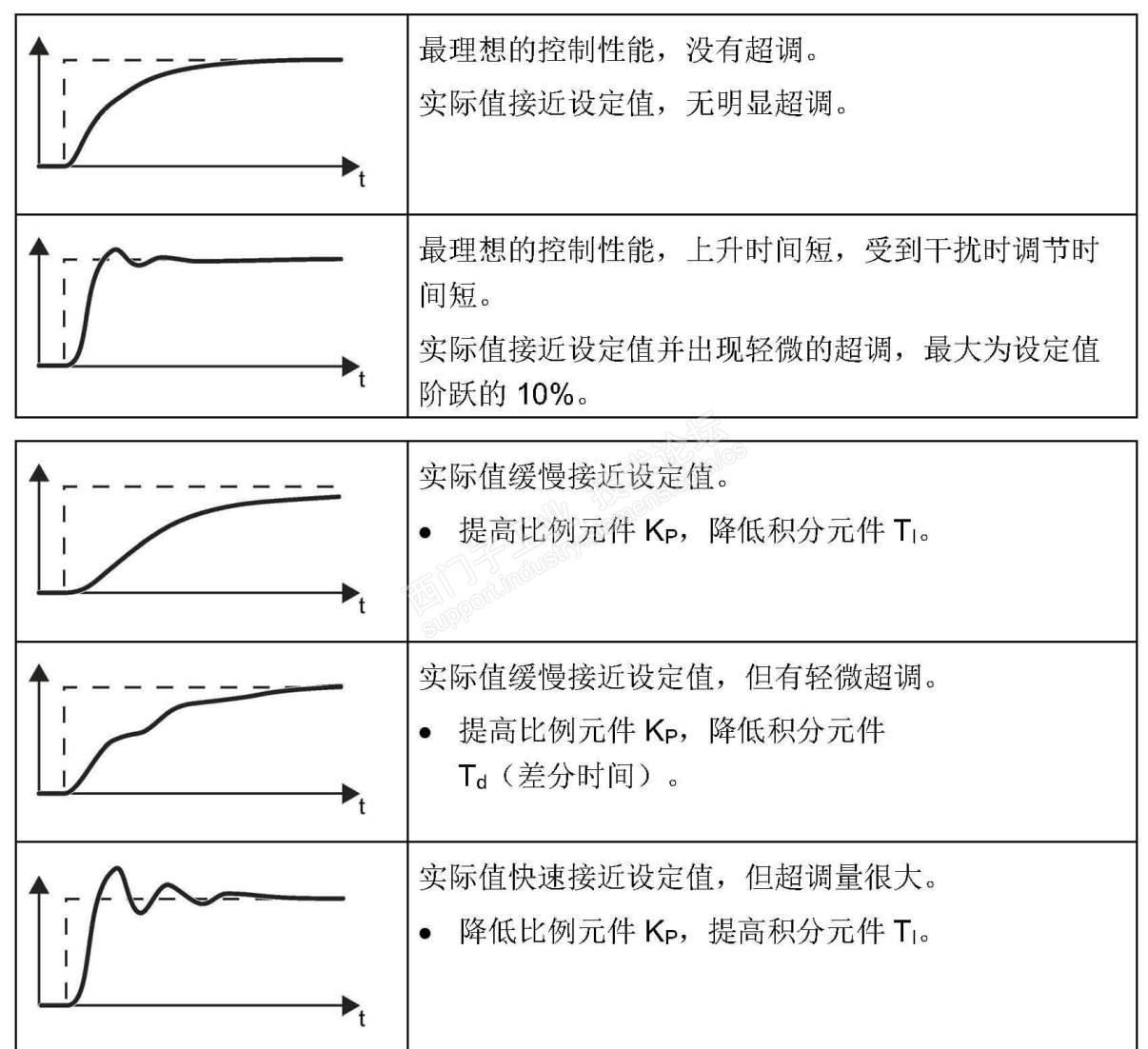 那么我们实际使用,采用图示中的哪种更好?这就需要自己根据现场需求来确定了。是允许超调以最快的时间达到目标值,并允许震荡收敛?还是绝对不能超调,但调节时间可以不受限制,最终达到目标值。特定的调试结果,都是根据需求去决定的。没有好和不好之分,只有满足需要还是不满足需要之分。