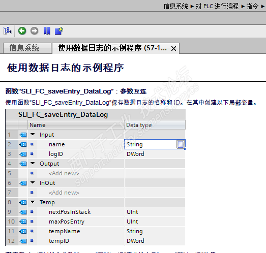 在学习博图15数据日志使用功能的途中,遇到好多问题,自己也找不全资料,理解起来比较费劲,我想通过数据日志功能实现对过程值的监控数据的保存,这样就可以用web服务器查看数据日志,以便对这些监测值进行其他处理,之前也在论坛里求问了一些大佬,现在自己用数据日志功能时,发现真的好难,这次在学习过程中,在博图F1的信息系统里面查看数据日志使用案例,发现它有一个函数的创建,我在程序块里面创建函数,没找到它出现的界面,不知道是不是自己没找到,下面附图说明: