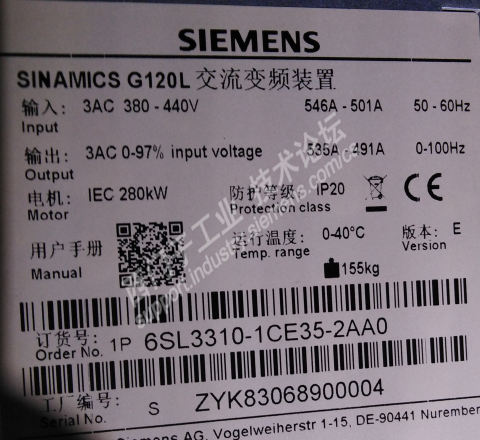 最近环保项目刚上了一台200KW电机,配了一台280KW的G120L变频装置,没有配置进线电抗器、出线电抗器。已投运,还未发现问题,供电系统:TN-C-S 控制方式:硬线4-20mA模拟量给定。