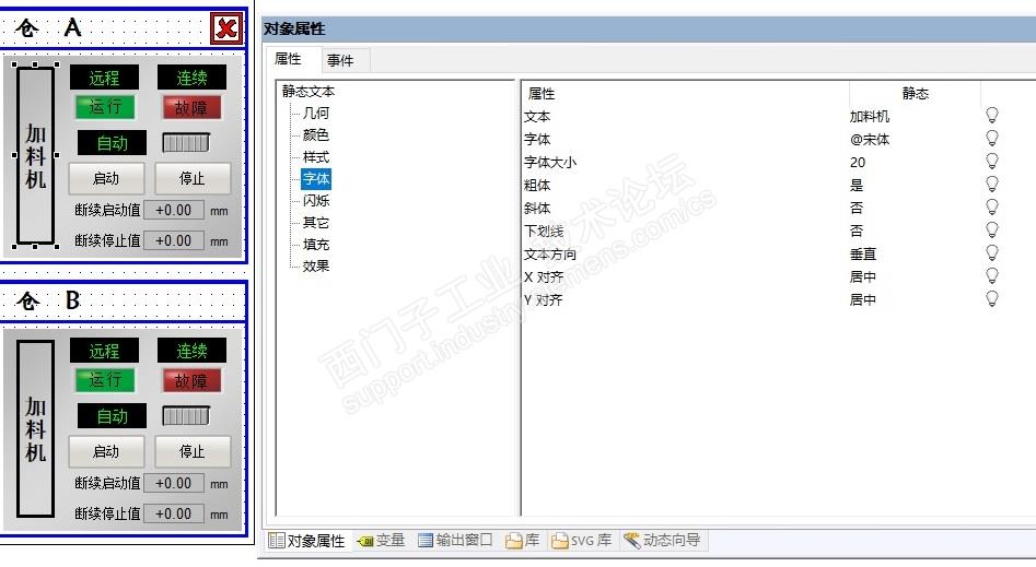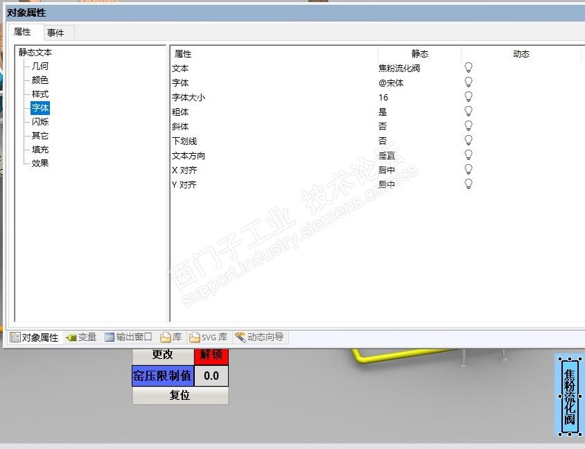 小弟尝试了把流化阀那几个字复制到加料机这个画面,运行起来文字还是倒,把加料机这几个字复制出来到流化阀的画面,运行起来也是倒,很莫名其妙,查看了两个文字的属性设置是一样的,页面的属性也是一样的,不明白问题出在那里了,哪位大神遇到过类似的情况,请赐教,谢谢!!!