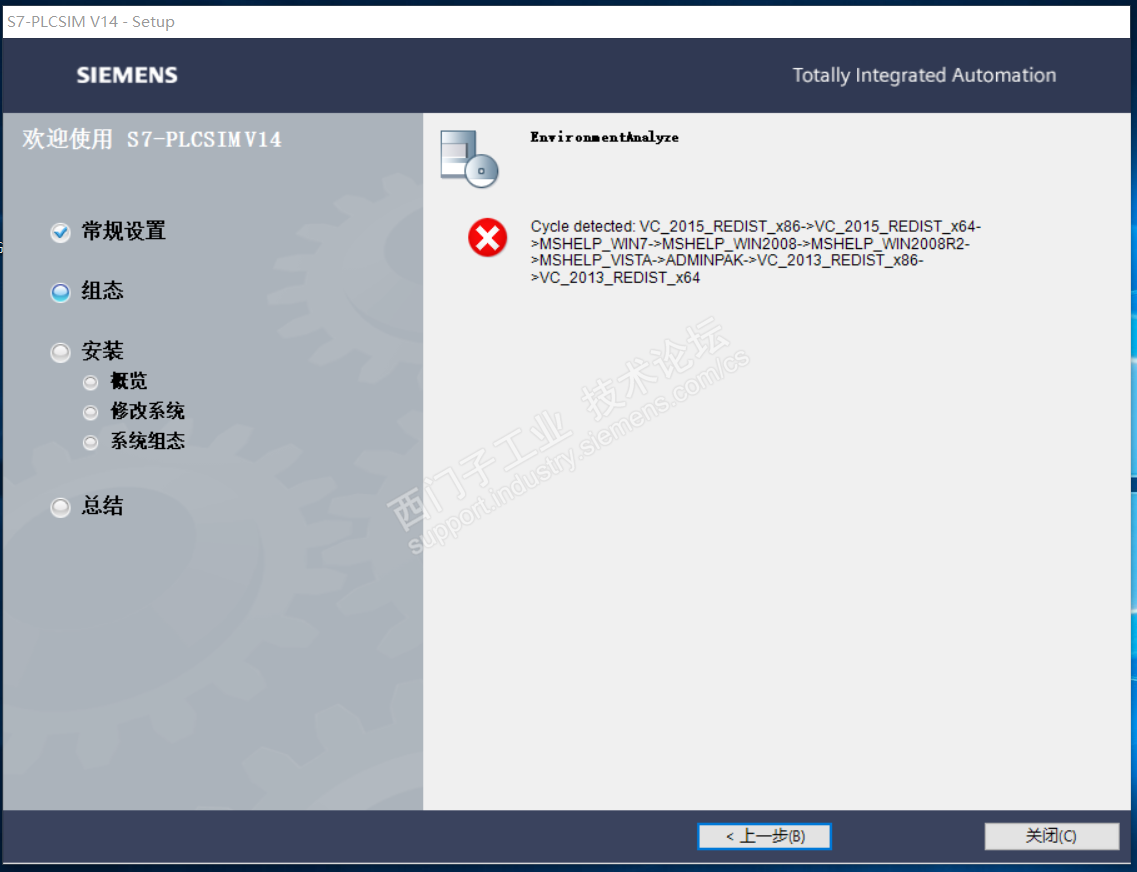 如图,请教大神这是什么情况,WIN10的系统 V14_SP1已经装好,可以正常打开,装仿真的时候报这个错不能继续