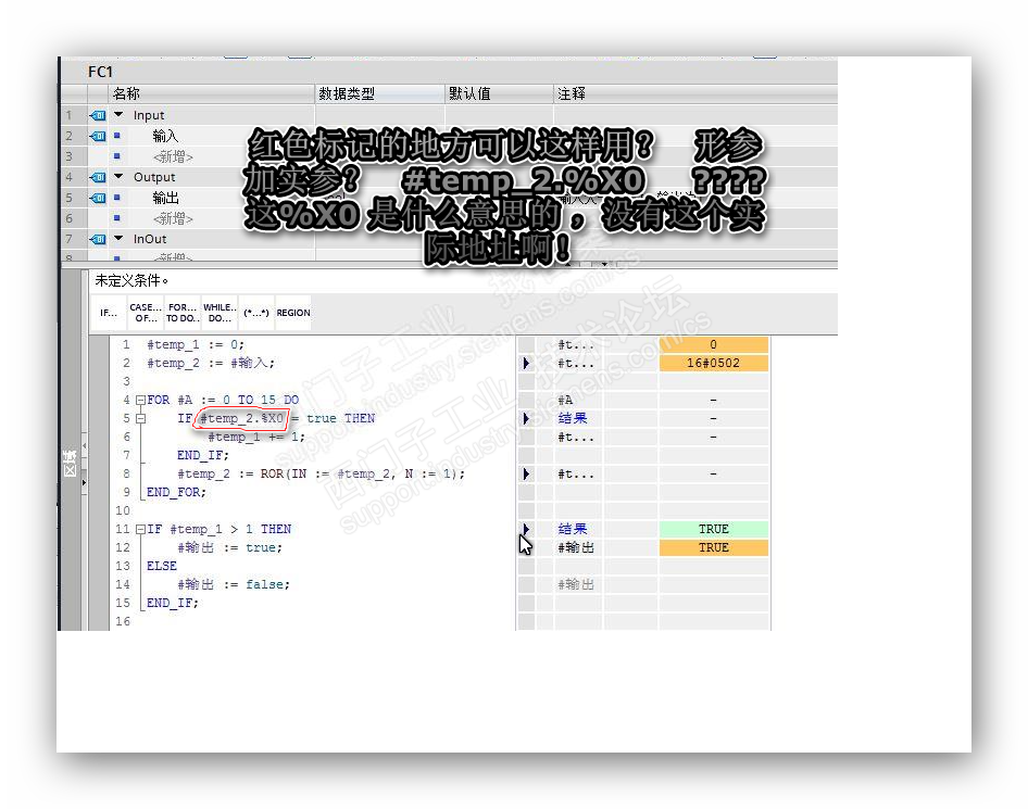 for重复循环获取#temp_2的最低位 如果这个数为真#temp_1的值自加1,然后再移位, 但是IF哪里形参跟实参混用,有这样的用法?%XO? 这是什么东西?