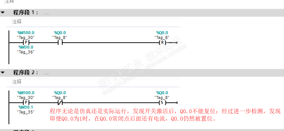 3:后面我采取如下方法,在最后一个置位线圈之前,换了另外一个常闭点,Q0.1。就能解决这个问题,但是不知道具体原因,可能我对置位的了解还不够深入,查询资料后也没有找到令人信服的说明。
