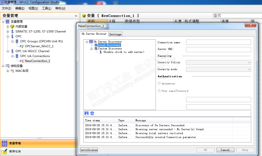 老师,我这个OPC UA通信组态连接参数找不到本地服务器,是什么原因,OPC DA 的可以通信上