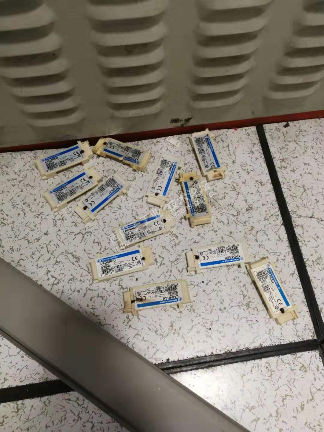 于是匆匆忙忙的开车100多KM的路程,到了现场,根据经验,由于开始的短路造成了很多东西的烧坏,根据电气图的分布,结合短路的部位,把有可能烧坏的东西都拆解进行了检查,果不其然,发现了问题,交流接触器的RC元器件烧的一塌糊涂,整个系统使用了大概40个左右,基本上烧的差不多了,如下图片是烧坏的实物,图片上每个RC元件本来是没有黑色的小点的,是烧出来的。