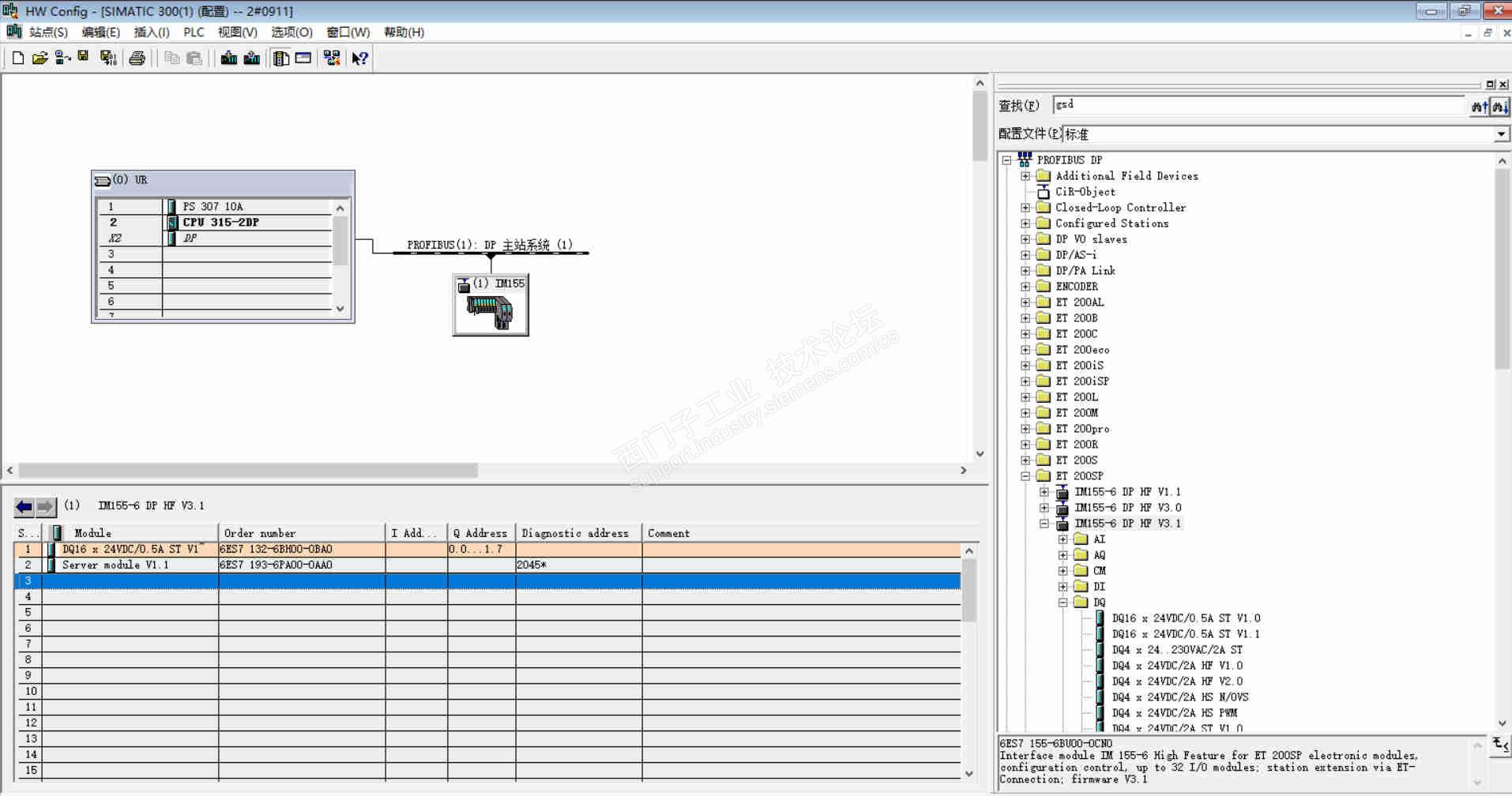 et200sp的硬件组态使用profibus dp/additional field devices目录下的就没问题,使用profibus dp/et 200sp目录下的就会出现描述中的问题