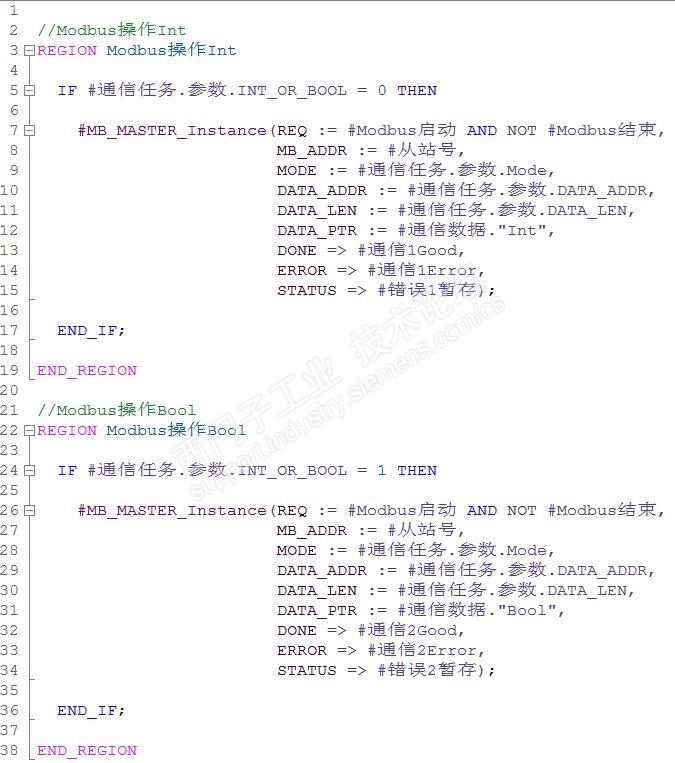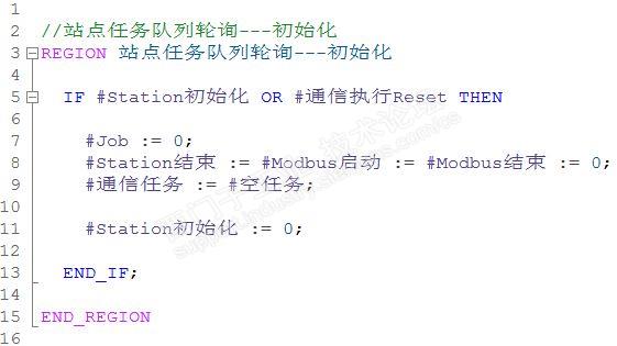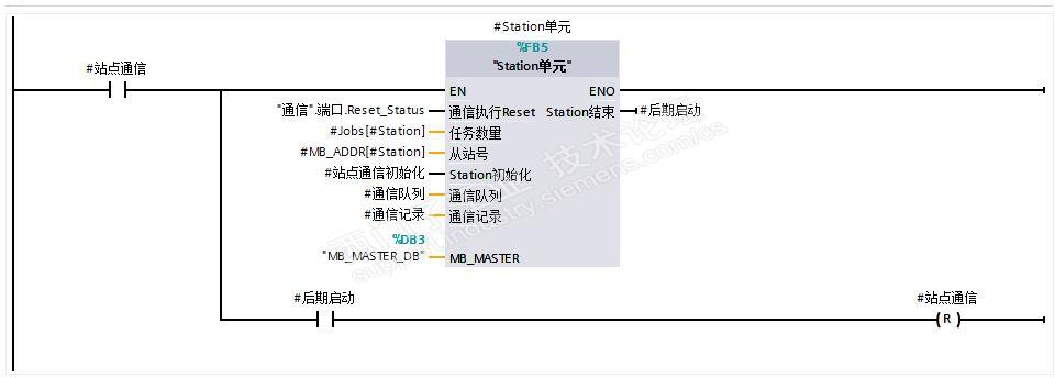 下面的图片是站点FB被调用的样子。这个FB的设计是基于假设通常大多数情况下,多个从站会采用相同的通信参数连接到一个485端口,所以没有为每一个从站的执行单独进行不同的端口初始化设置。如果情况需要,比如每个从站的协议有所不同,可以把端口初始化的子模块嵌入到站点FB内部,这样可以为每个不同的从站配置不同的端口参数。