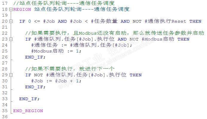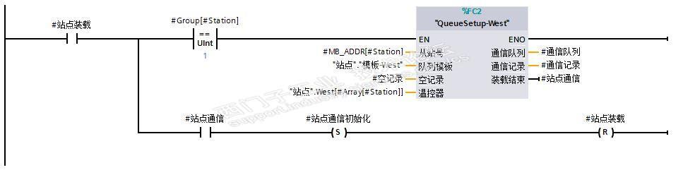 (1)下图是以上面提到的温控器为例,在通用化的站点FB执行之前,首先要按照项目需求和来自HMI指令和参数的随时变化,对通信队列进行动态调整的站点装载FC。这个FC是为这类温控器量身定制的。每一种不同类别的从站需要有自己独特的站点装载FC。