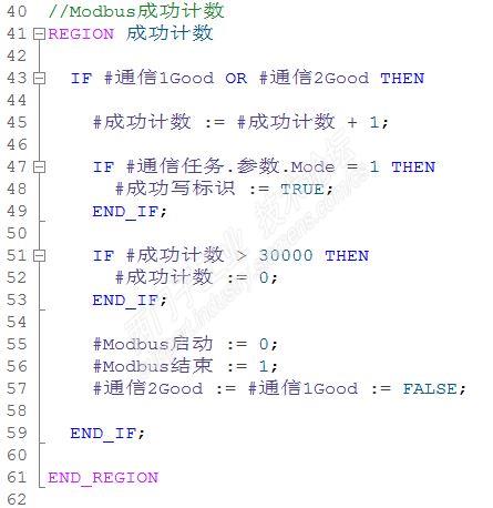 (3)成功计数供HMI监控通信质量。写操作的记录是为了成功之后不再重复写,除非有变化。