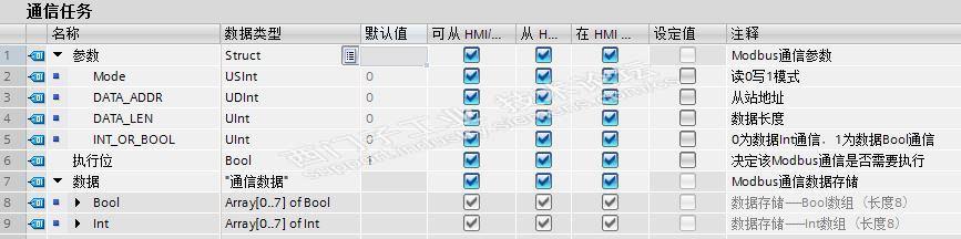 1、通信数据。这个是为了通用化的Modbus任务执行FB而设计的。事实上这个不是必要的。