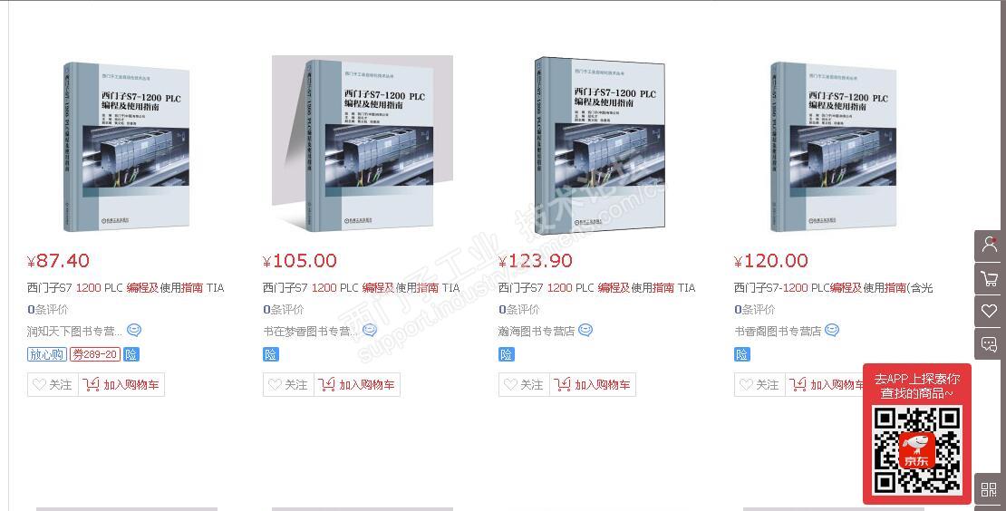 看到前面有朋友买了《S7-1200编程及使用指南》这本书,想了解一下,就去查了下价格,结论嘛就是——大家同样是做生意,价格的差距怎么这么大!