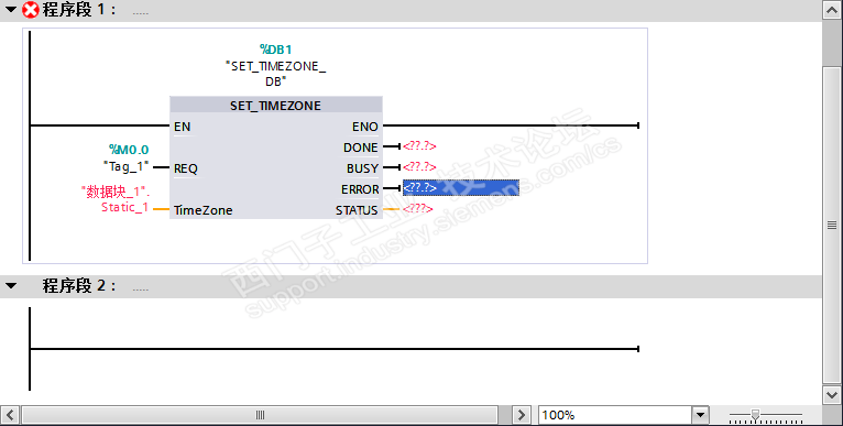请问老师图一的设置时区指令的引脚改怎样输入(在DB块里应该填什么)设置成中国时区?