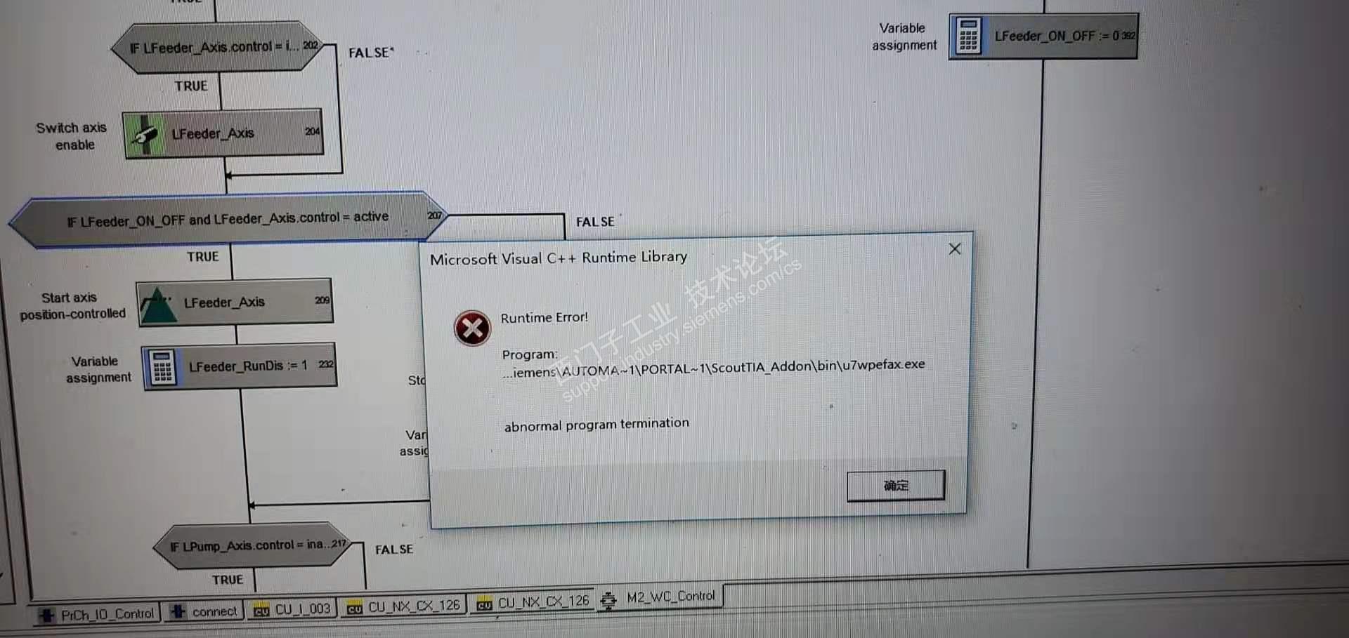上个月发现:用博途TIA V15.1+SIMOTION SCOUT TIA V5.3.1找开用博途TIA V15+SIMOTION SCOUT TIA V5.2写的MCC程序报错,报错信息如下图:
