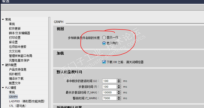在设置里把GRAPH的步和转换条件名称的长度设置成显示两行就可以了。