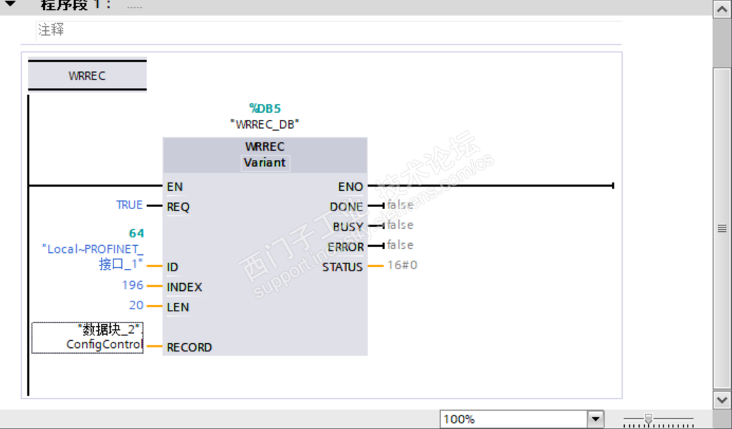 用CPU1510SP,硬件组态添加一个实际没有的模拟量输出模块,用组态控制功能,将WRREC指令放在OB100里面,重启CPU后,CPU一直在停止状态,无法启动,复位重启CPU直接报错,是哪里设置有问题?