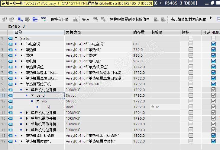 是这样的,首先建立了一个写位的数据类型,含有16个位,然后再DB 块建立一个数组,数组的数据类型,是自己建立的那种。然后通过线圈赋值,去写位。是Modbus 通讯写。具体见图。急[br]