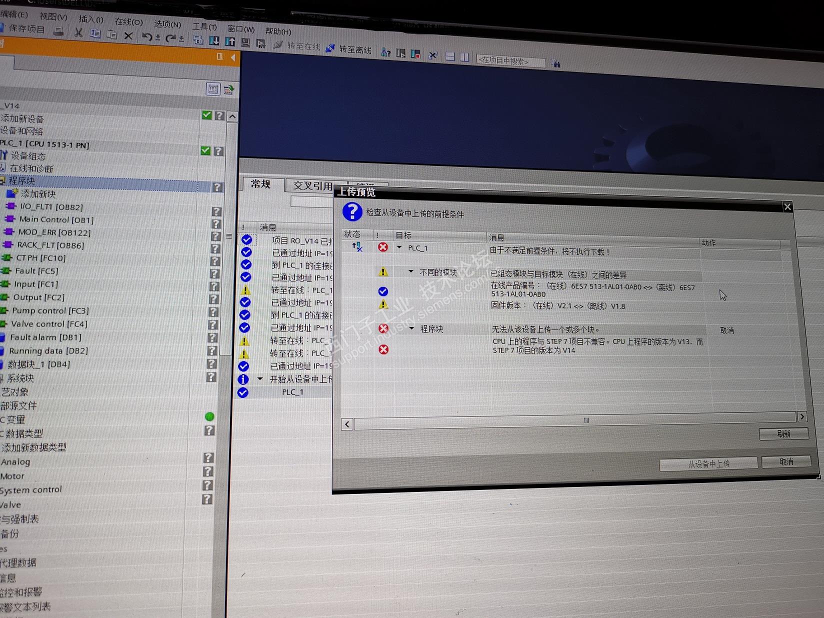 厂家给的v13版本的程序,用v14打开后提示升级,升级升级之后在线程序和数据块后面全部是灰色问号,全部从新编译也没报错。程序快打开后也不能监视,程序也不能对比,点击问号提示是权限问题,向各位大神请教一下这个问题怎么解决?