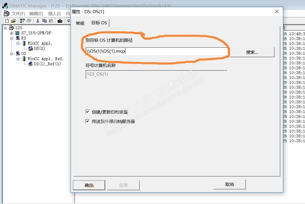接着上一个帖子,按照论坛里各位工程师回复的贴子方法进行后,我在工程师站组态了一个PC站点作为ES站使用,再组态一个参考站点作为下载到OS站上使用,把原来的WINCC项目也导入到step7中,相当于集成了WINCC,导入也正常,现出现如下问题,我在Netpro网络里把组态好的ES站硬件下载时,提示无法连接,首先可以排除ES站的电脑和PLC通讯这块的问题,因为我可以在step7中监控程序,说明PLC和PC电脑时通讯上的,其次在SMATIC项目管理器中配置ES时,右键单击打开对象属性时,路径该如何选择这个路径理论上不是ES站的计算机名吗?