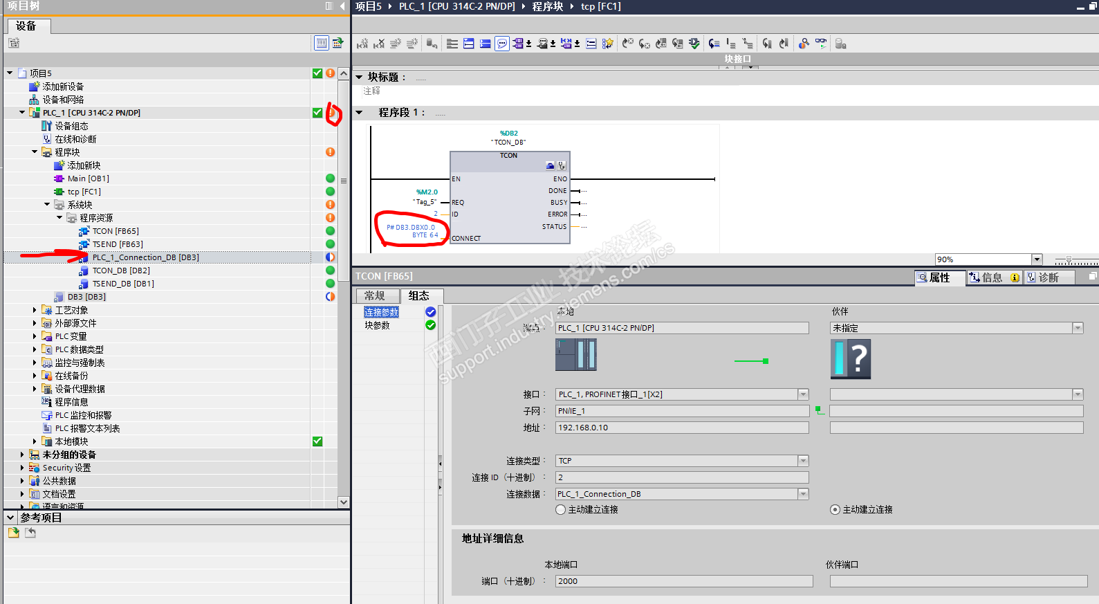 今天用博图V15.1组态S7-315DP/2PN与第三方设备的TCP通讯,调用TCON快组态连接后可以正常通讯,但系统生产的连接数据块无法断电保持,关电后无法正常通讯,请大神指教,谢谢如图: