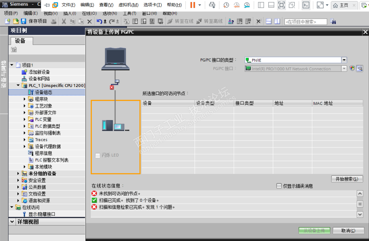 虚拟机能PING通主机和PLC;但是博途V15.1找不到PLC