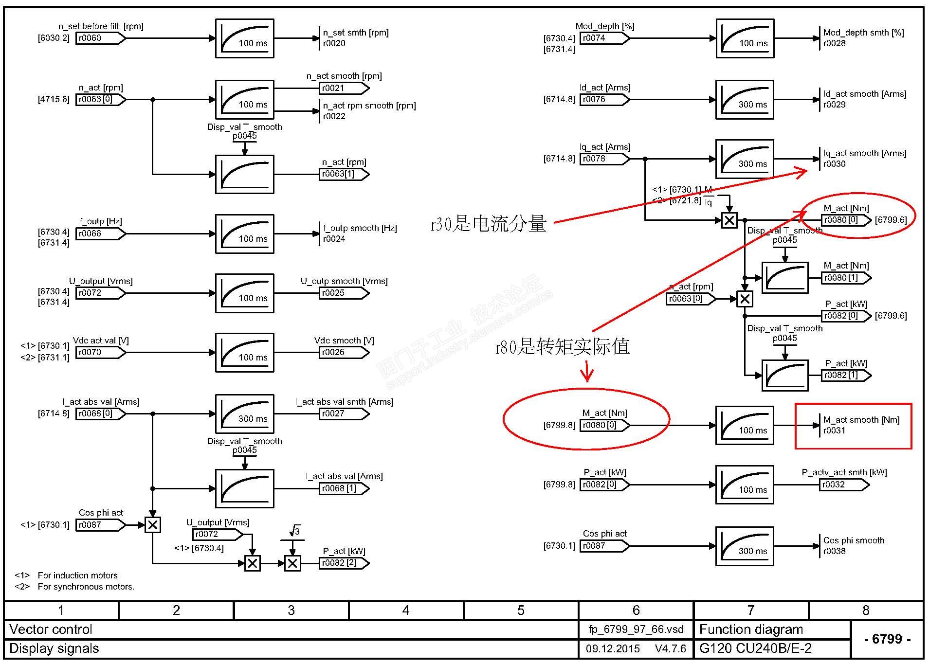 r30不是转矩实际值,是转矩的电流分量。所以如果作为转矩实际值监控参数,应该选择r31,或者是r80.1(通过参数P45滤波设置后)。