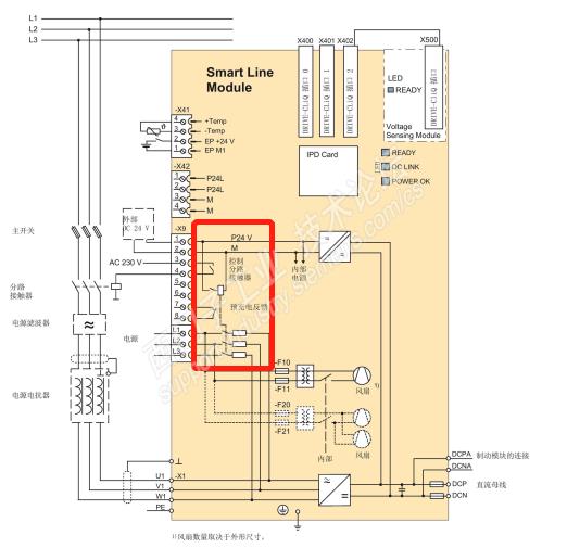 后查看手册,才找到原因:电机模块的电容总和超过了电源模块的预充电能力。