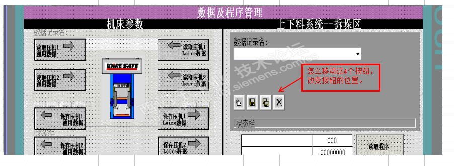 WINCC FLEXIBLE 2008 中 工艺配方选定下面有新建、保存、覆盖以及删除4个按钮,我想移动这四个按钮的位置,该怎么操作呢,万分感谢帮助。 画面见附件