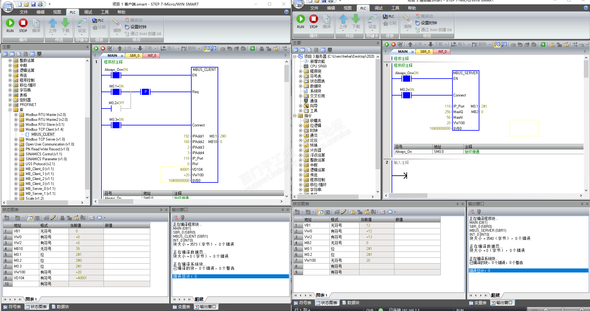 用的软件版本是 2.5 。用的这个版本里自带的那个 MODBUS TCP 库。