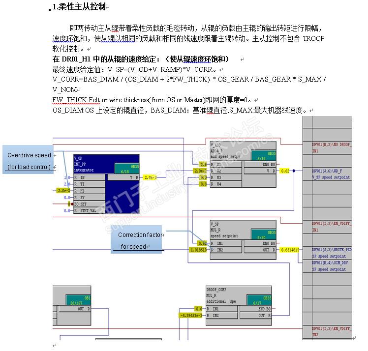造纸厂的主从辊控制,主辊用速度控制,从辊采用1.05线速度+转矩限幅控制。