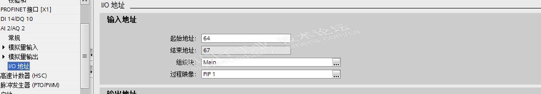 1、CPU硬件组态的“I/O地址”选项卡下的“组织块”选项为OB1(程序循环OB),“过程映像”选项为PIP1。