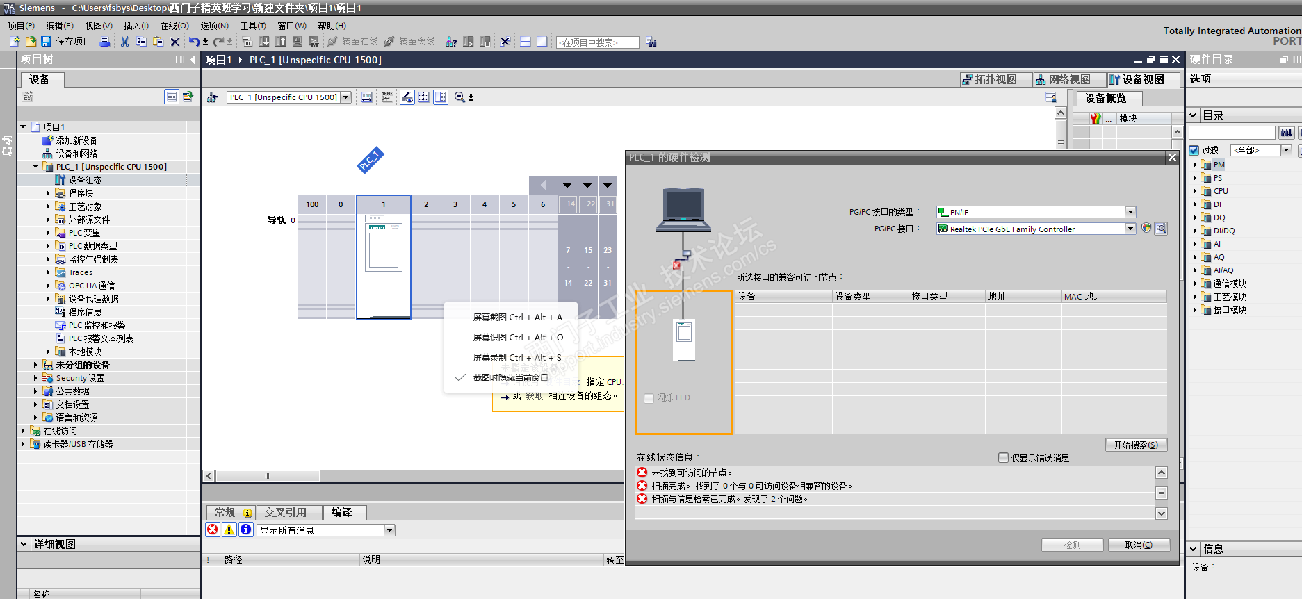 你好!这是在演示未指定S7-1500 PLC 组态过程软件画面的2张截图,请帮看看哪里操作存在问题,谢谢