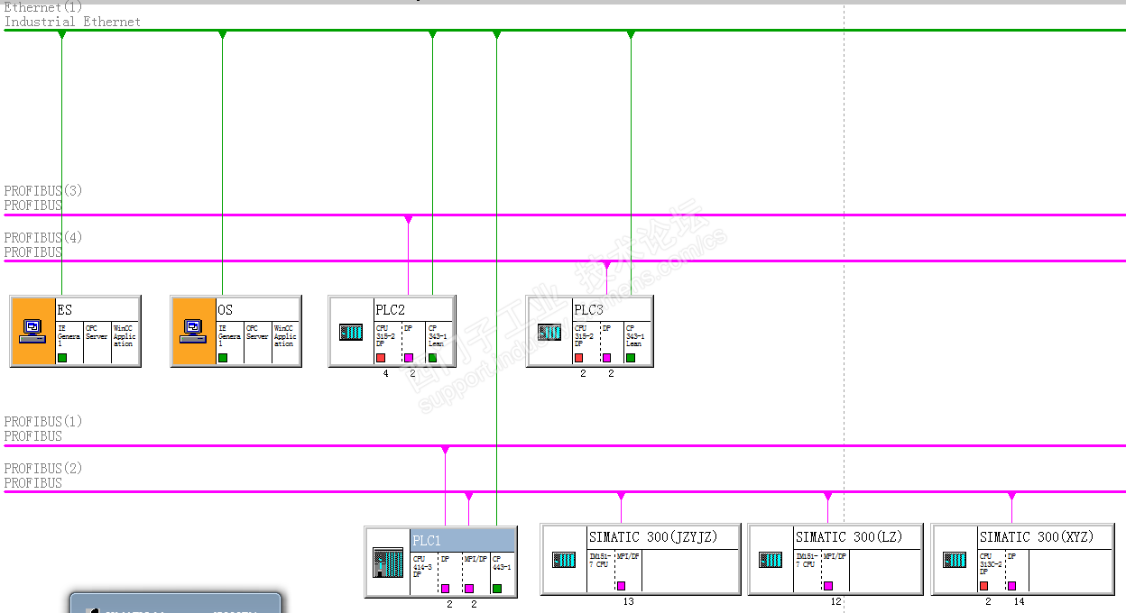 图中是一条高速轧线的网络系统图,一直存在的问题是wincc画面反应滞后,不过钢的时候画面还看不出滞后,只要一过钢,画面滞后大概35秒左右,就是钢丝都已经开始收卷了,wincc画面才刚开始反应,不知是什么原因。