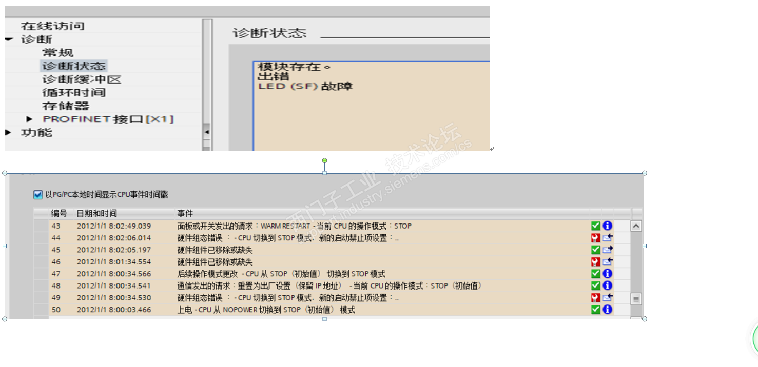 我现有一cpu1510sp-1pn 现在送上电之后er灯一直报警,但可以现在程序,就是cpu不能运行。重置cpu也无济于事。没有带任何的i/o卡件,故障诊断状态见照片。