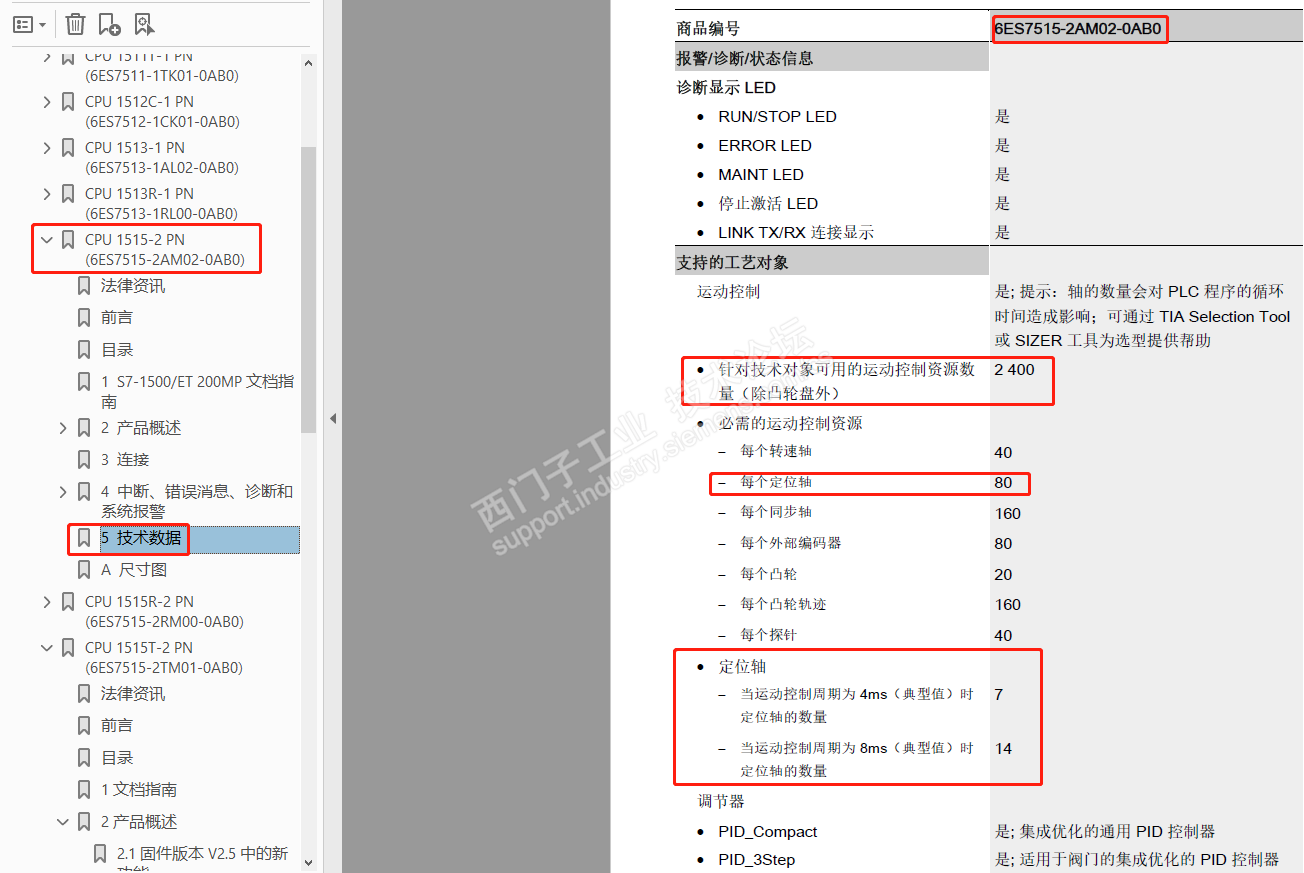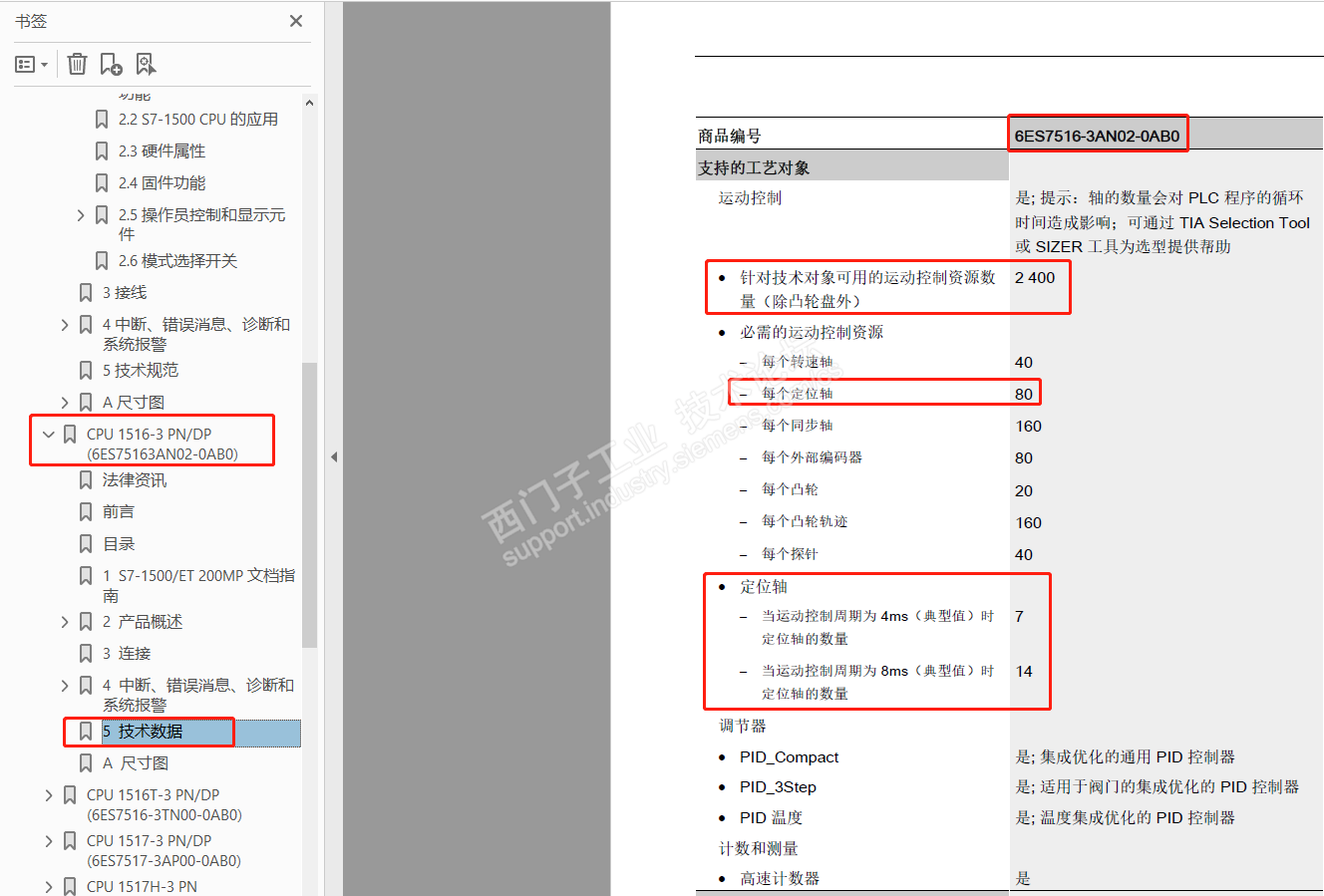 但是在技术数据里查得当运动控制周期为 4ms(典型值)时定位轴的数量为7根,
