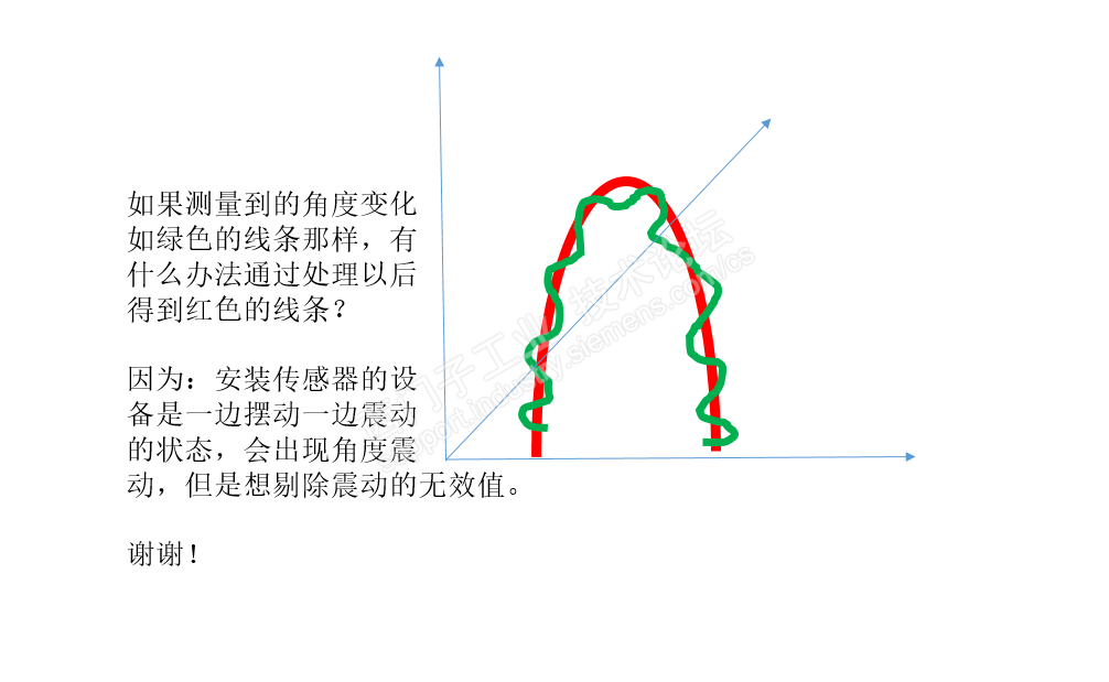 使用传感器来测量一个物体的摆动角度,但是由于安装传感器的物体上还会存在震荡,这样就意味着在物体一边摇摆的过程中还会存在震荡,现在只想测量摇摆的数值,想通过滤波算法剔除震荡的波峰值,具体如下图片: