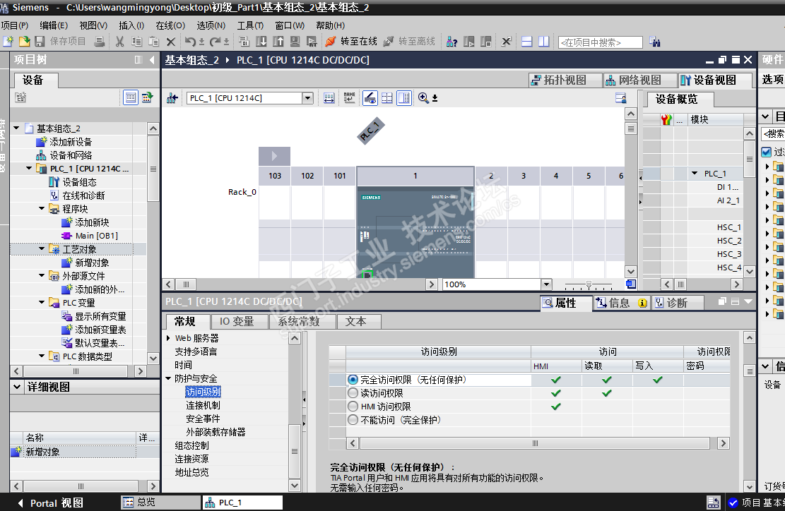 18.通过 CPU 属性配置,完成下列功能:a.CPU 上电后直接启动;b.将时间设置为中国时区;c.通过保护设置,可以使3个用户分别有3个不同级别的访问权限:“完全访问权限(无任何保护)”,“读访问权限”,“HMI访问权限”。d.使用系统存储器实现初始化功能,置位 Q0.0 输出点为1,并给 MW20 赋值为100.e.使用存储器字节输出 1 个周期为 2 秒的方波,即 1 秒为 0,1 秒为 1。
