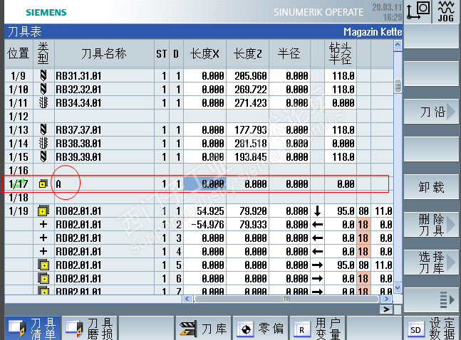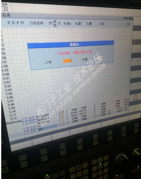 然后新建的刀具被放到列表最下方,再移位该刀具到刀库列表时又出现图示加载位置已占用的提示