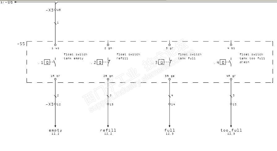 电气原理图上有四个水位,空水位,补水水位,补水完成水位,满水位