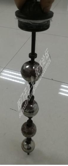 四个浮球,每一个浮球代表一个水位,开关在轴内,是预埋的干簧管开关,浮球内安装有磁铁,工作原理很简单就是浮球到达干簧管位置时,非接触磁力让干簧管动作。输出信号。