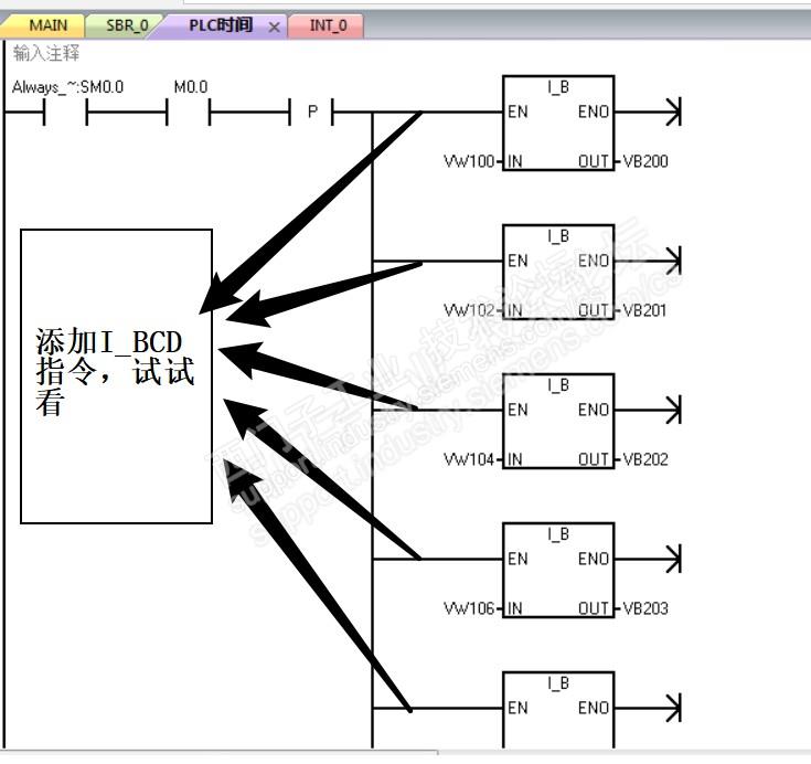 你的程序,在I_B指令之前,都添加上一条BCD_I的指令。