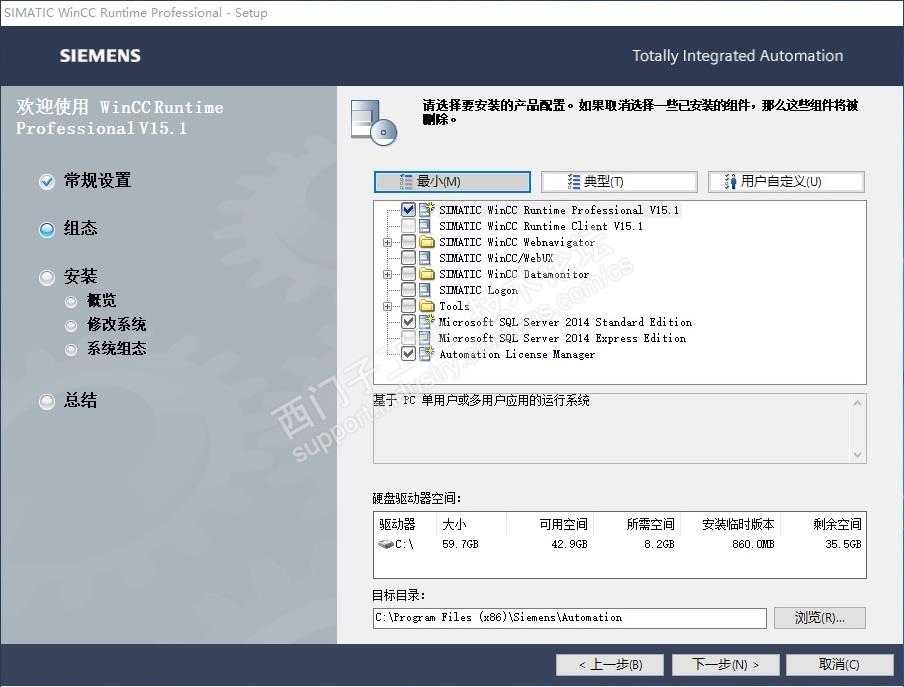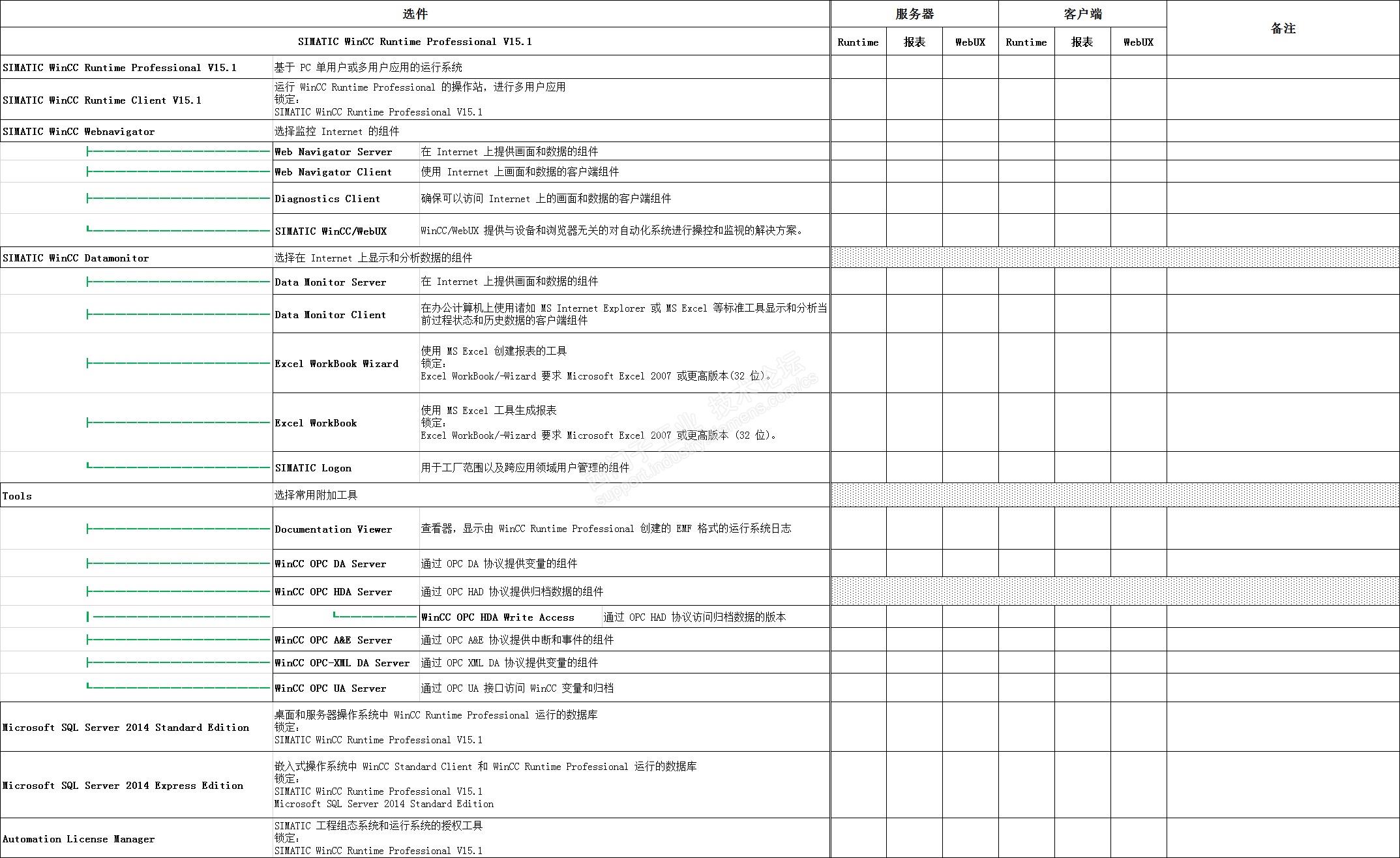 在安装 WinCC Runtime Professional 遇到选件的选择问题,查阅到的帮助和手册均知识介绍各选件的功能!