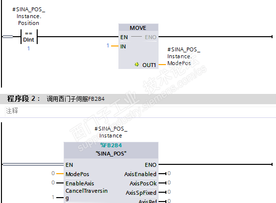 如图 控制V90的FB284的输入ModePos 我可不可以不指定新的变量 直接赋值给其背景数据块的ModePos 来控制??? 这样不是省DB块吗?