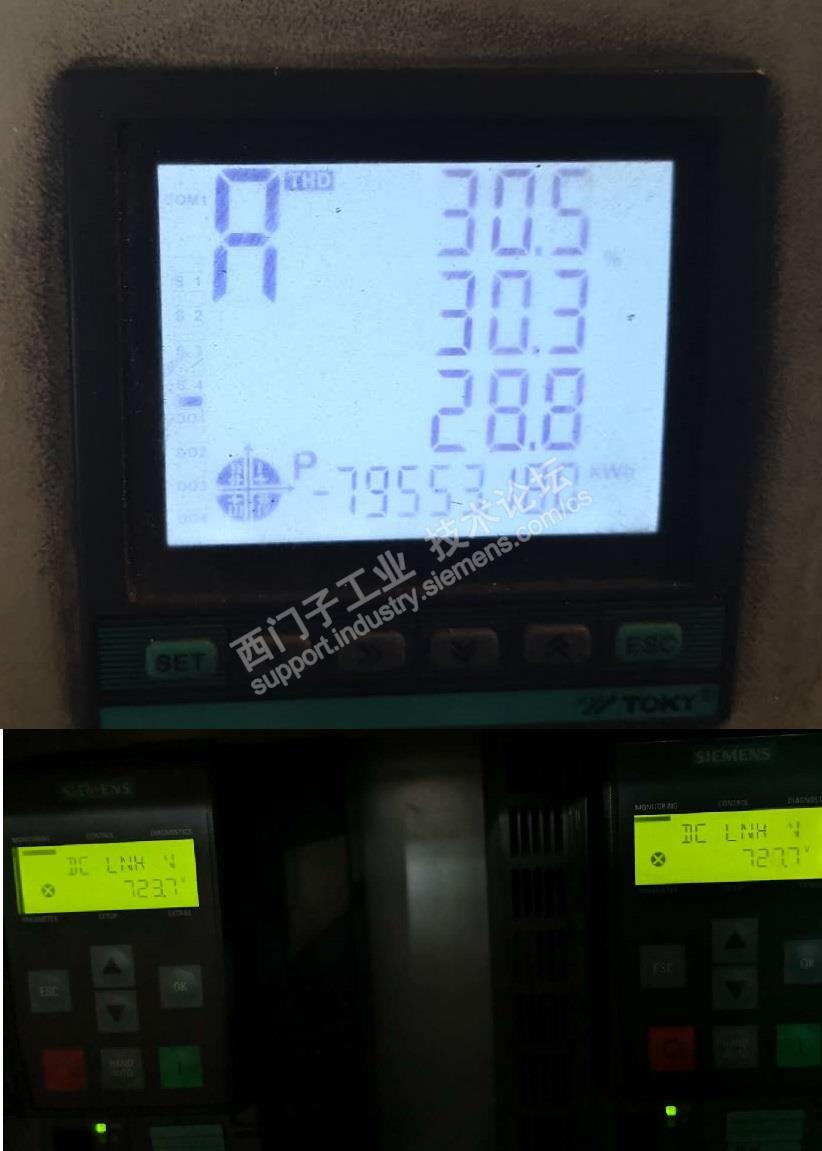 3、谐波重的时候,变频器未运行,直流母线电压都会升高;