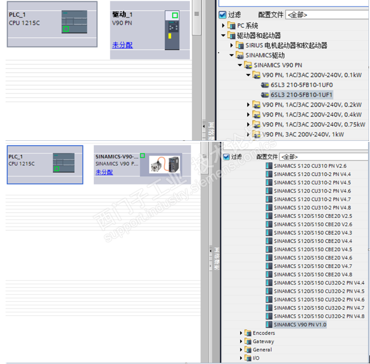 1200组态V90上面和下面都可以组态V90,请问应用场合有什么不同?