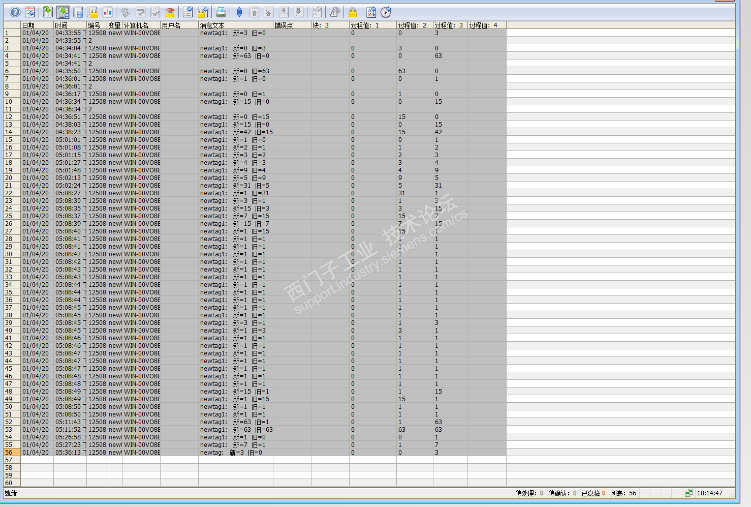 报警记录中,勾选了过程值块1,2,3,4。